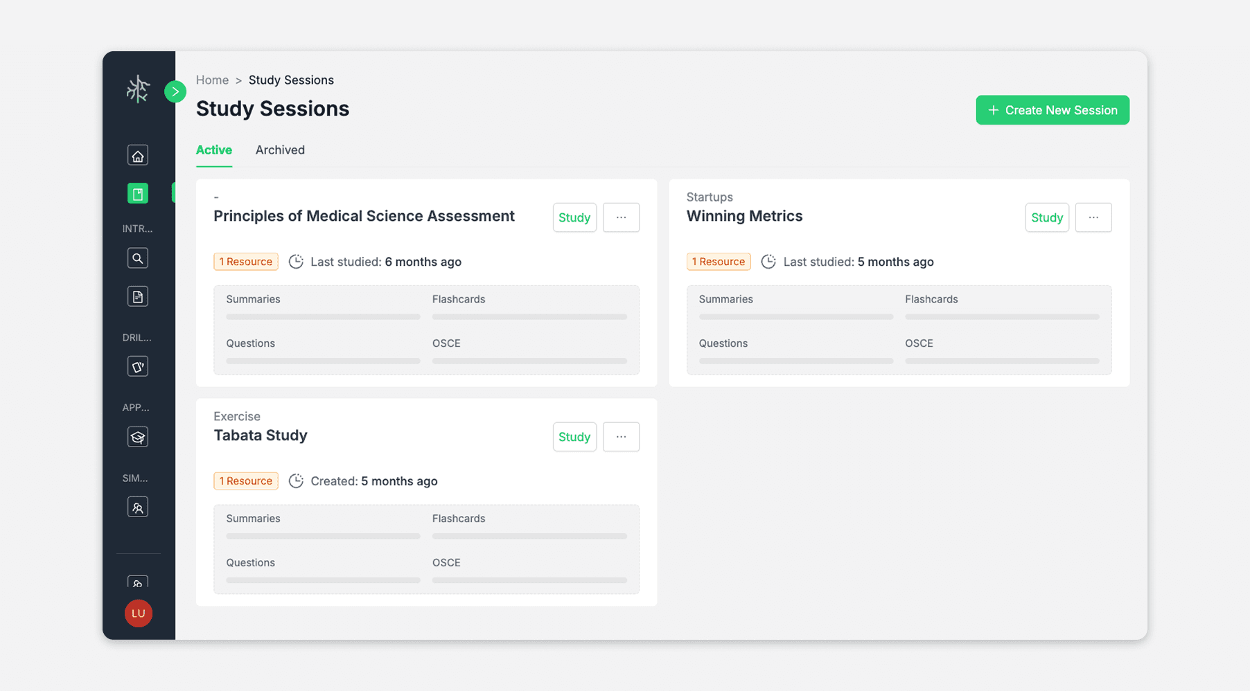 To build our MVP, I worked closely with the founding team to translate abstract ideas into key features that med students needed. I decided to take a modular approach so that new tools could be added without disrupting one another. This approach along with a standardized navigation structure ensured that future sections could be slotted in without redesigning the entire app.
